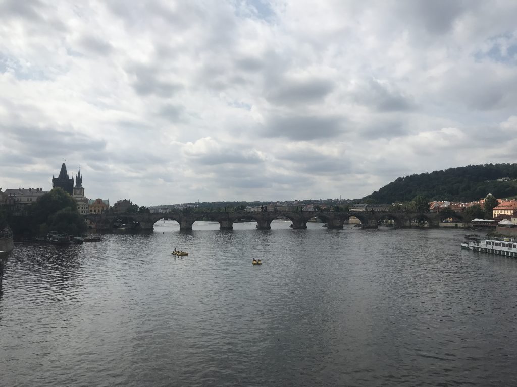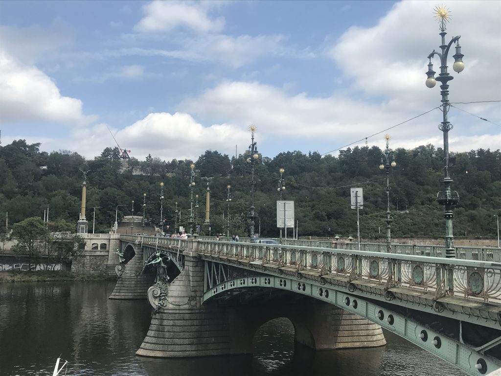 Nachdem wir dann unsere Freunde verabschiedet haben, ziehen wir los. Es gilt Prag zu erkunden. Also auf zur Tram-Station und mit der Tram 17 in die Stadt gefahren. Wir steigen an der Tschechischen Brücke aus und schlendern entlang der Moldau zur berühmten Karlsbrücke.