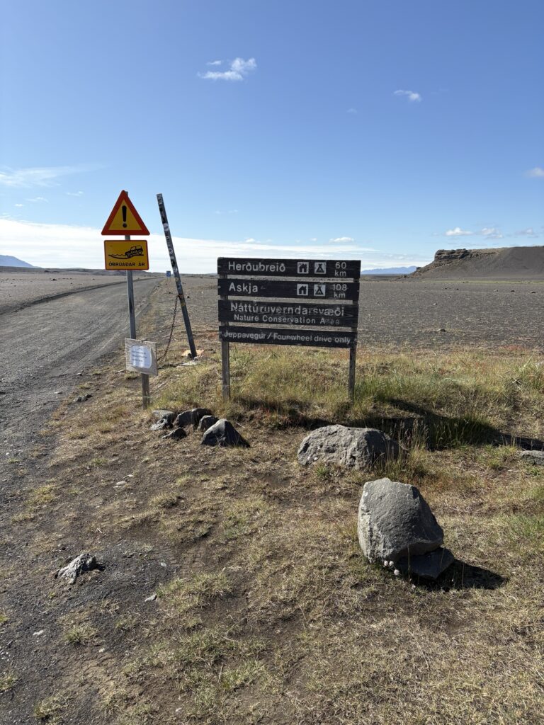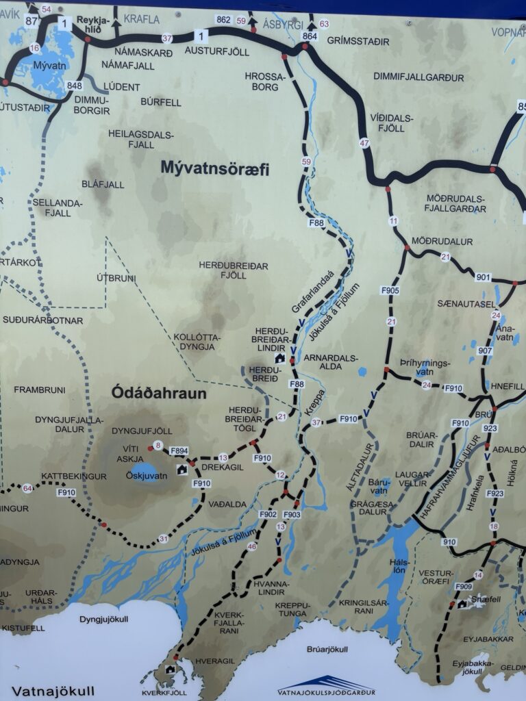 Jetzt geht’s zurück zur Farm, aber wir werden mutiger und nehmen eine F-Road die nicht in unseren Büchern steht (F910) Diese führt uns direkt zurück nach Möðrudalur.