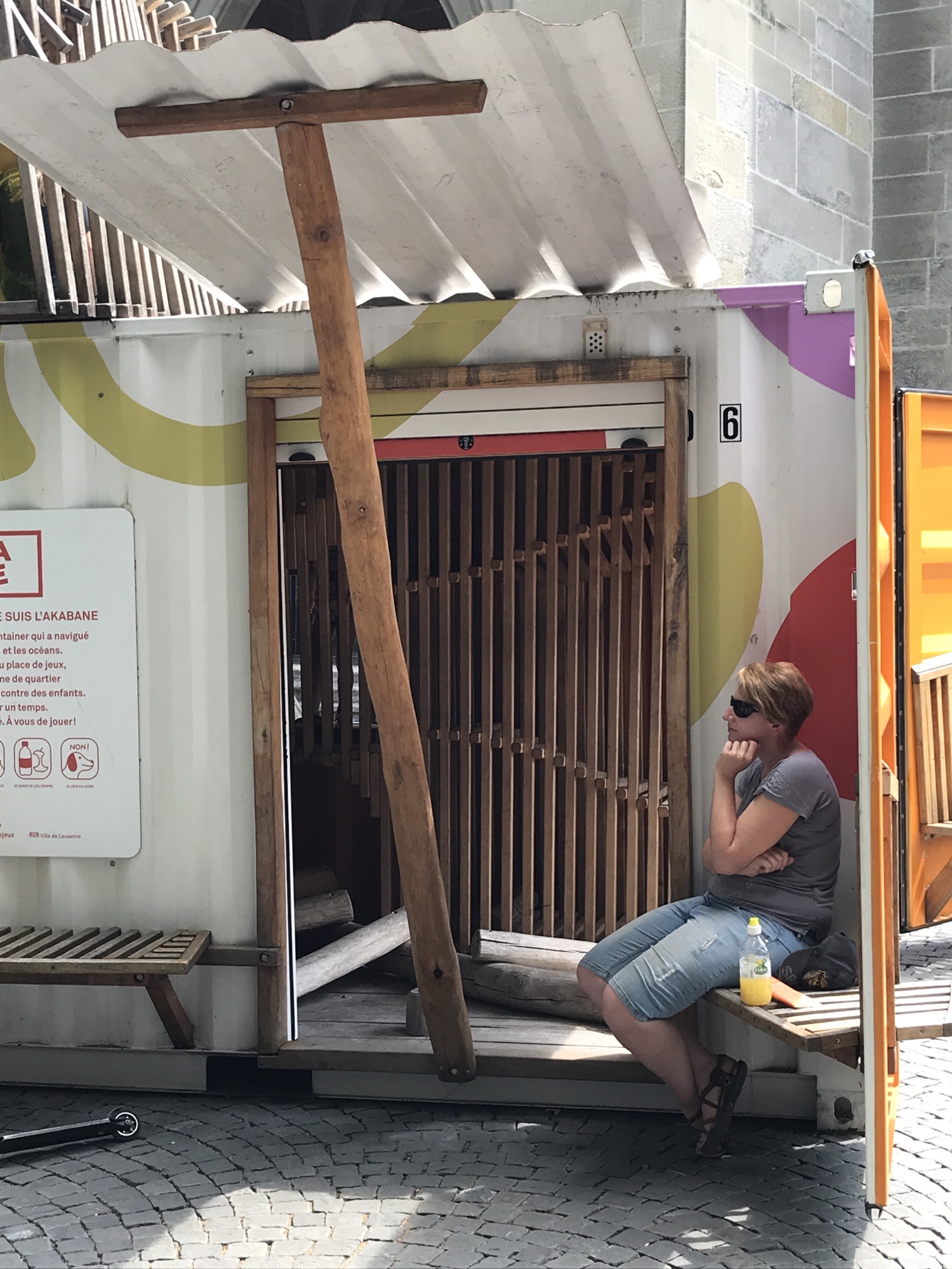 In der Innenstadt steht plötzlich ein Container auf einem Platz. In den Container wurde ein kleiner Spielplatz mit Rutschen eingebaut, klasse Idee.
