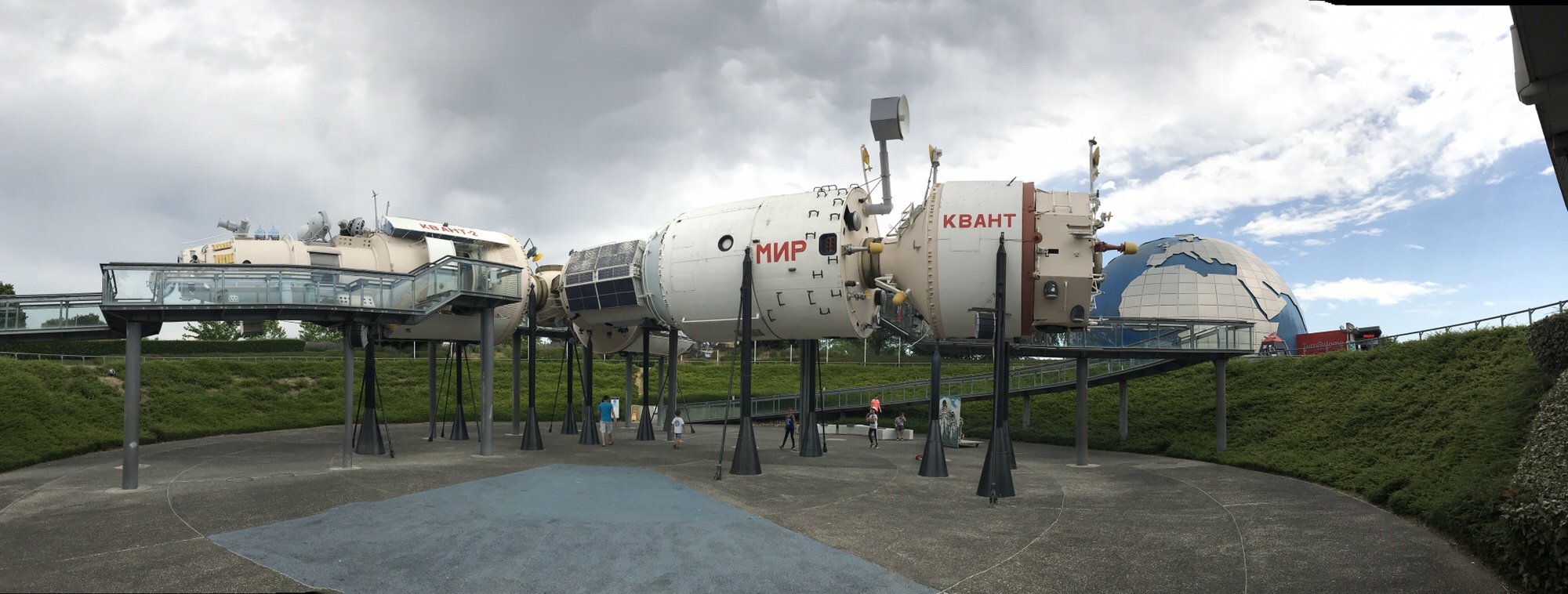 Neben den aktuellen Sachen der esa gibt es auch eine Ausstellung der russischen Raumfahrt mit einem begehbaren Modell der Mir und einer echten Soyus-Kapsel in die man sich setzen kann. Naja was heißt setzen. Quetschen, bzw. eine total deformierte Position einnehmen.