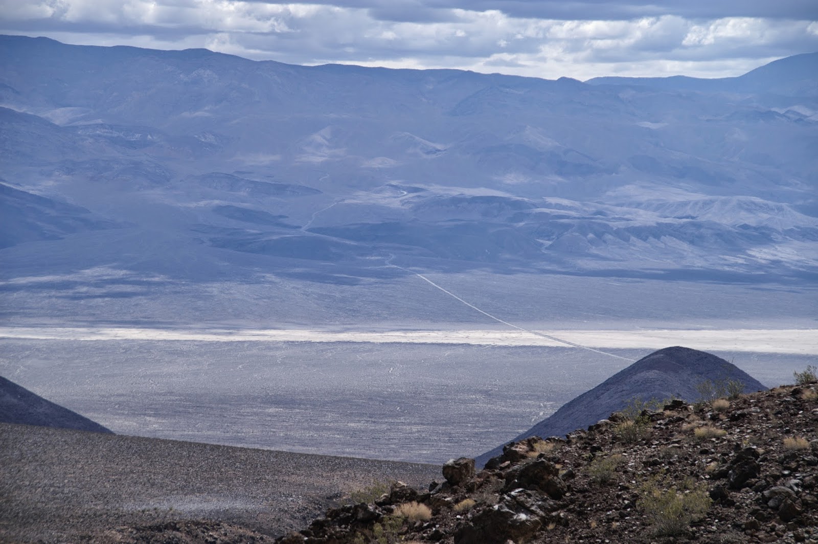 Ein Blick zurück (genau hinter der rechten Bergspitze liegt Panamint Springs).