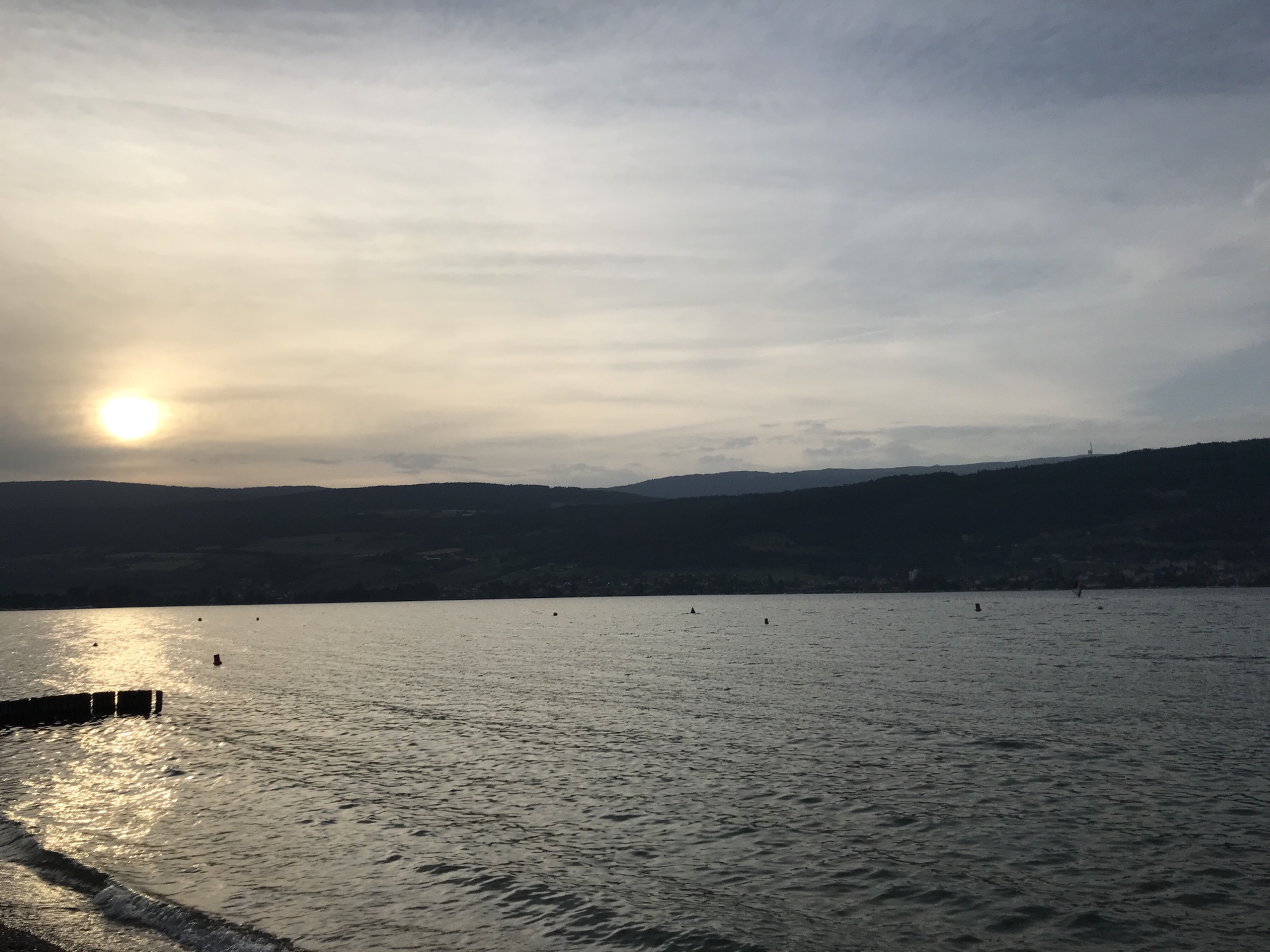 Da wir alle dringend eine Abkühlung brauchen suchen wir uns einen Gemeindecampingplatz am Bieler See. Genauer in Erlach.
