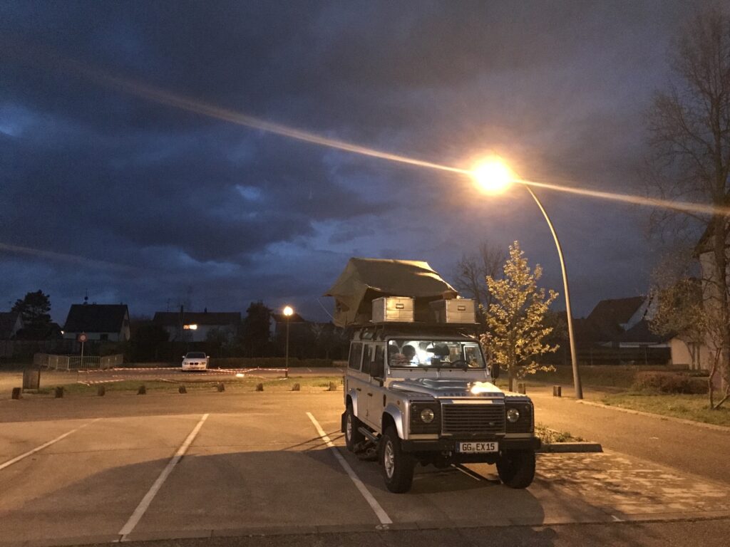 Die ersten 350 km ziehen sich aber dann doch. Spät abends passieren wir nahe Mulhouse die Grenze nach Frankreich und schlafen bei Sturm und Regen in Ottmarshsusen.