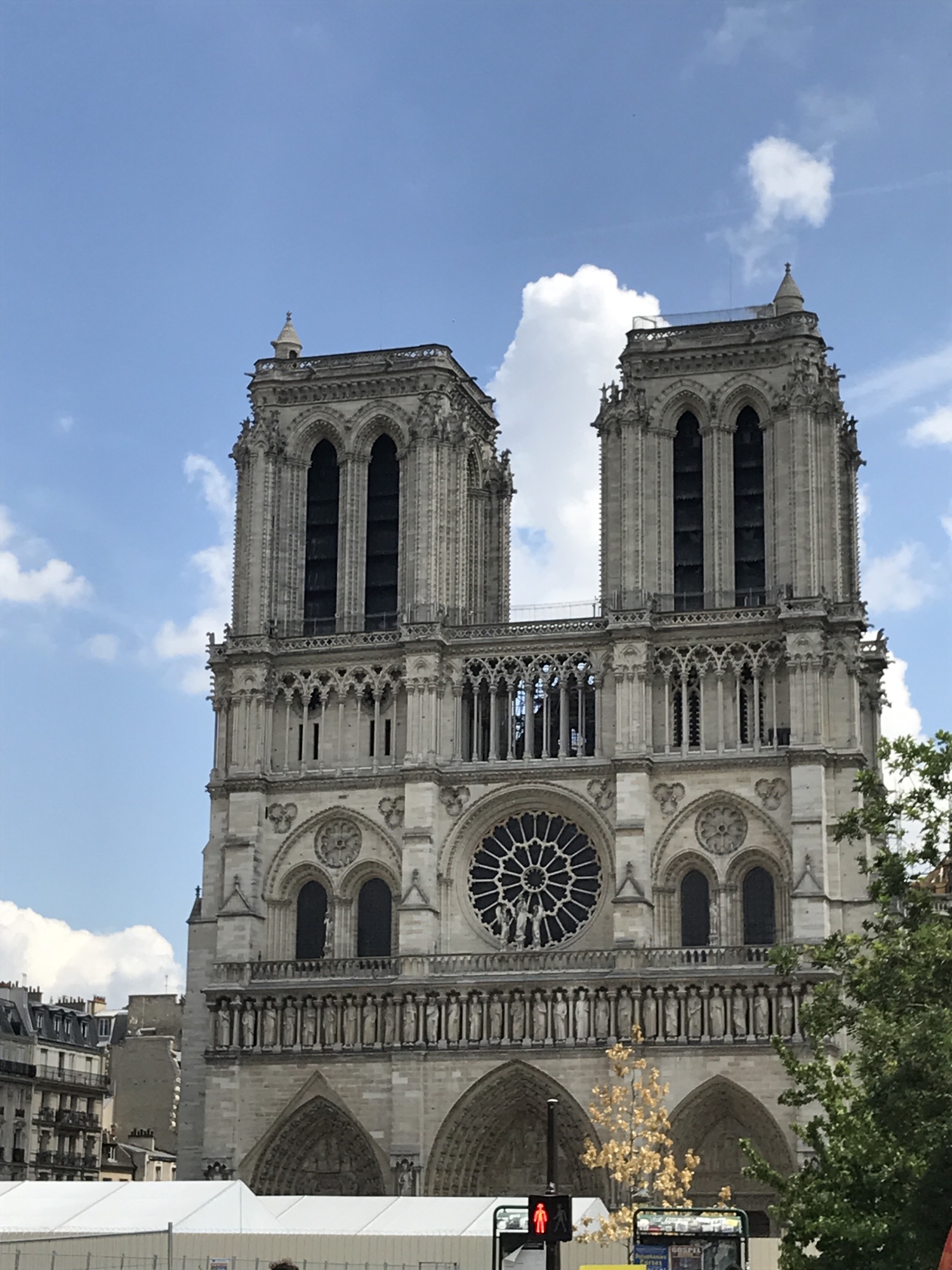 So ist erstmal nicht viel zu sehen (glücklicherweise). Man sieht allerdings, daß Notre Dame komplett hintendran eingerüstet ist. Der komplette Platz ist ebenfalls gesperrt.
