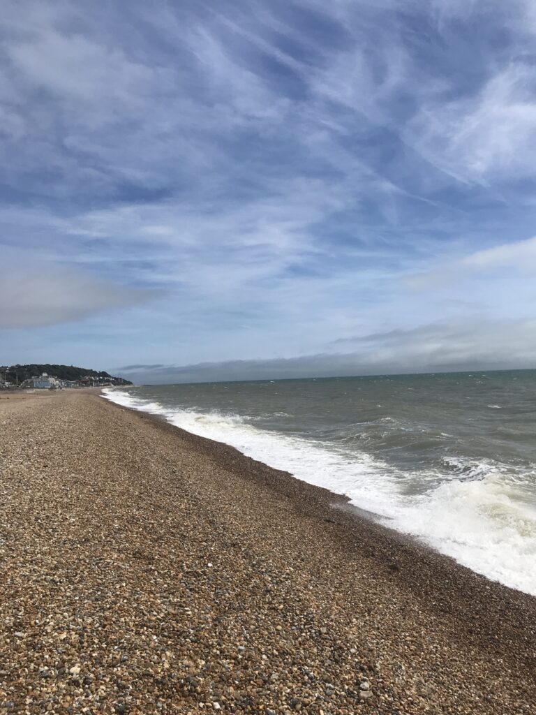 Tatsächlich kommen wir nicht sehr weit, den nächsten Stop legen wir in Folkestone ein. Eigentlich mit dem Hintergedanken den Eurotunnel zu sehen, den wir nicht finden. Also parken wir das Auto in einer Seitenstraße und laufen runter ans Meer.