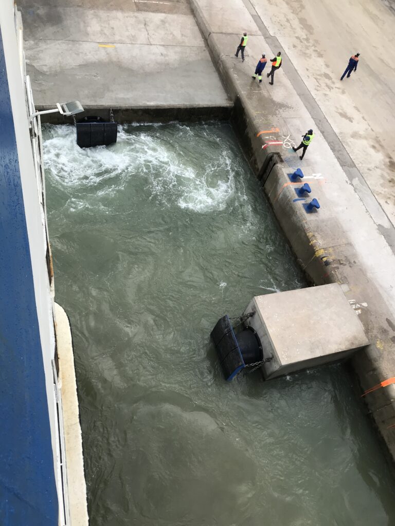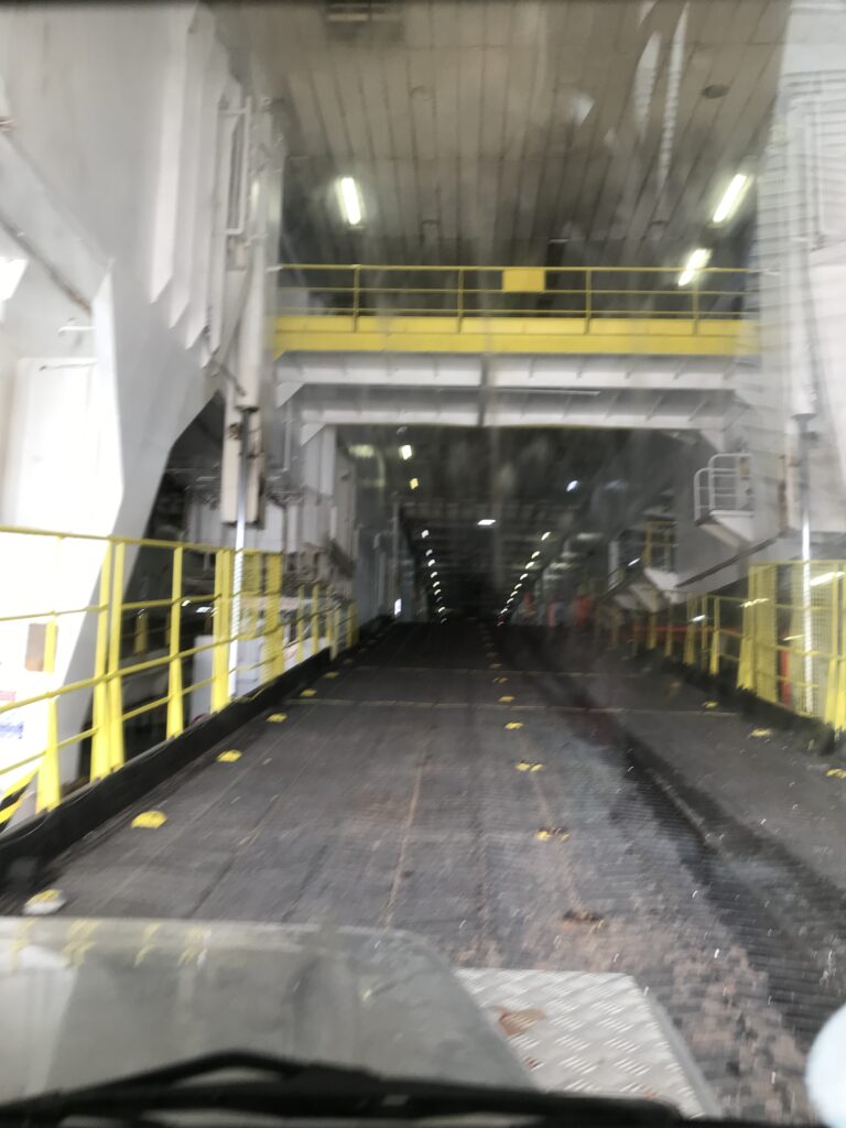 Wir frühstücken während wir auf das Embarking warten und dann ist es soweit. Wir fahren auf die Fähre und beziehen unsere Kabine.