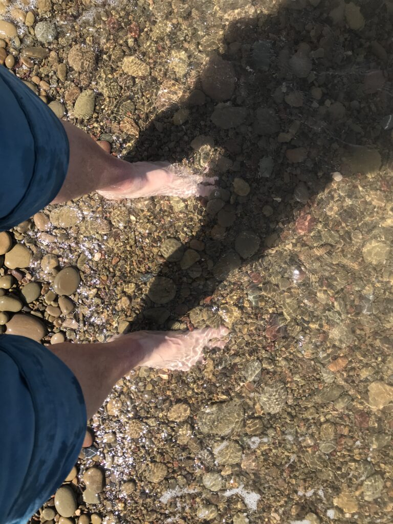 In der Zeit in Cala Iris nutzen wir das schöne Wetter und tauchen ein letztes Mal unsere Füße ins Meer.