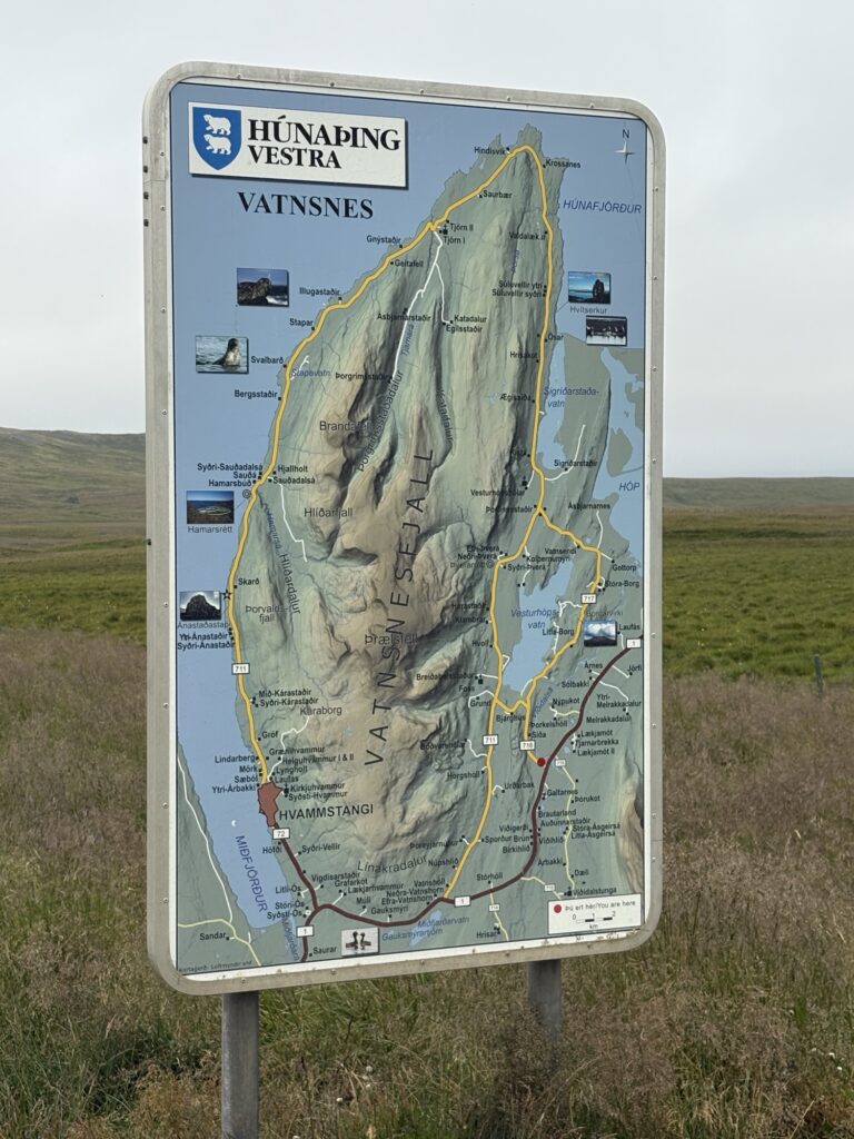 Wir fahren ein Stück weiter die Ringstraße und biegen dann rechts ab auf die 716, die kurz danach in die 711 mündet und uns die Halbinsel Vatnsnes auf der westlichen Seite nach Norden bringt.