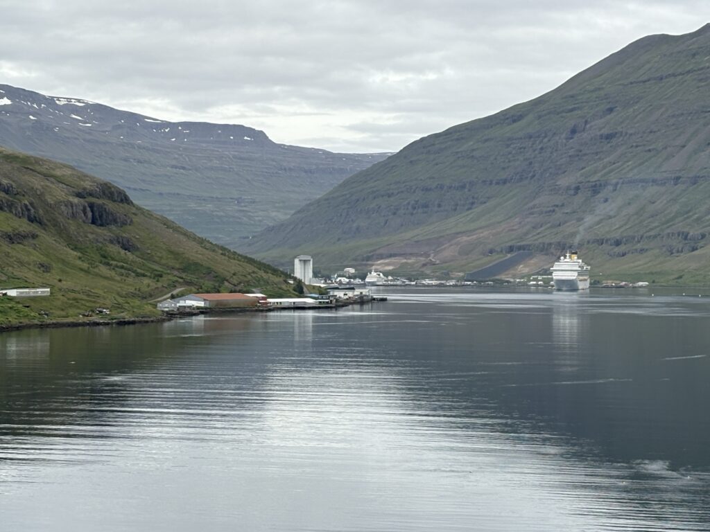 Langsam schiebt sich die Fähre in den Hafen von Seyðisfjörður. Wir können uns gar nicht satt sehen. Aber dann kommt der Aufruf zum Besetzen der Autos.