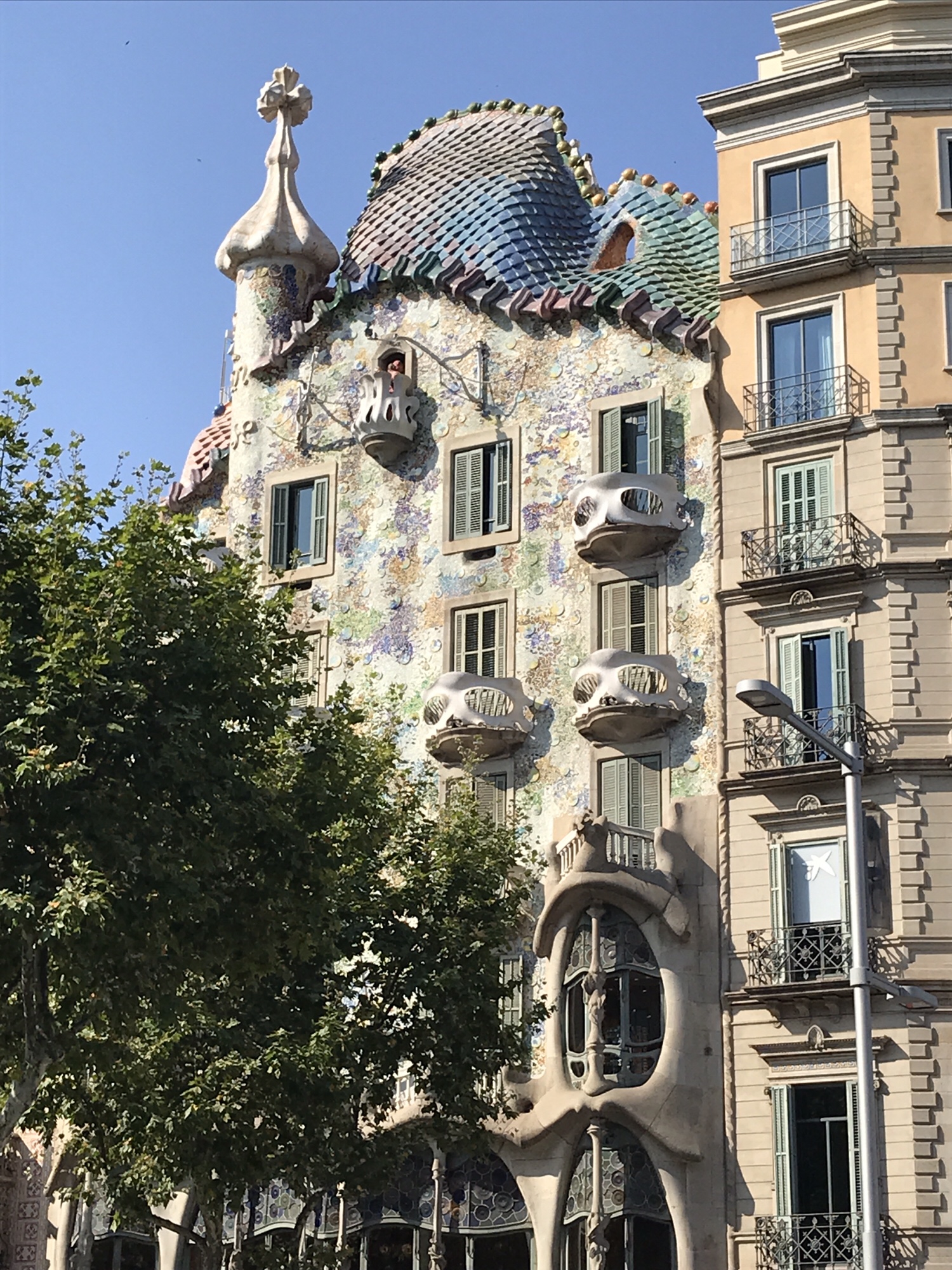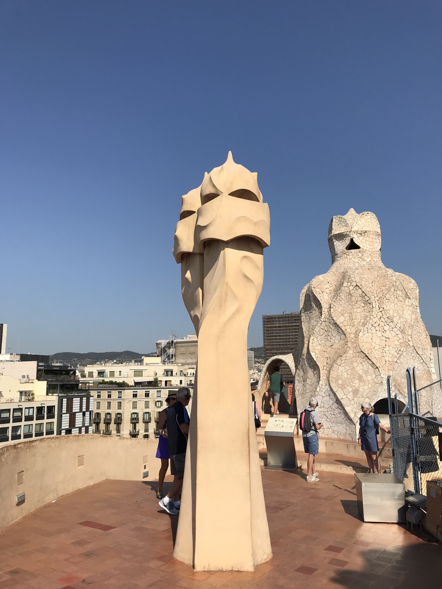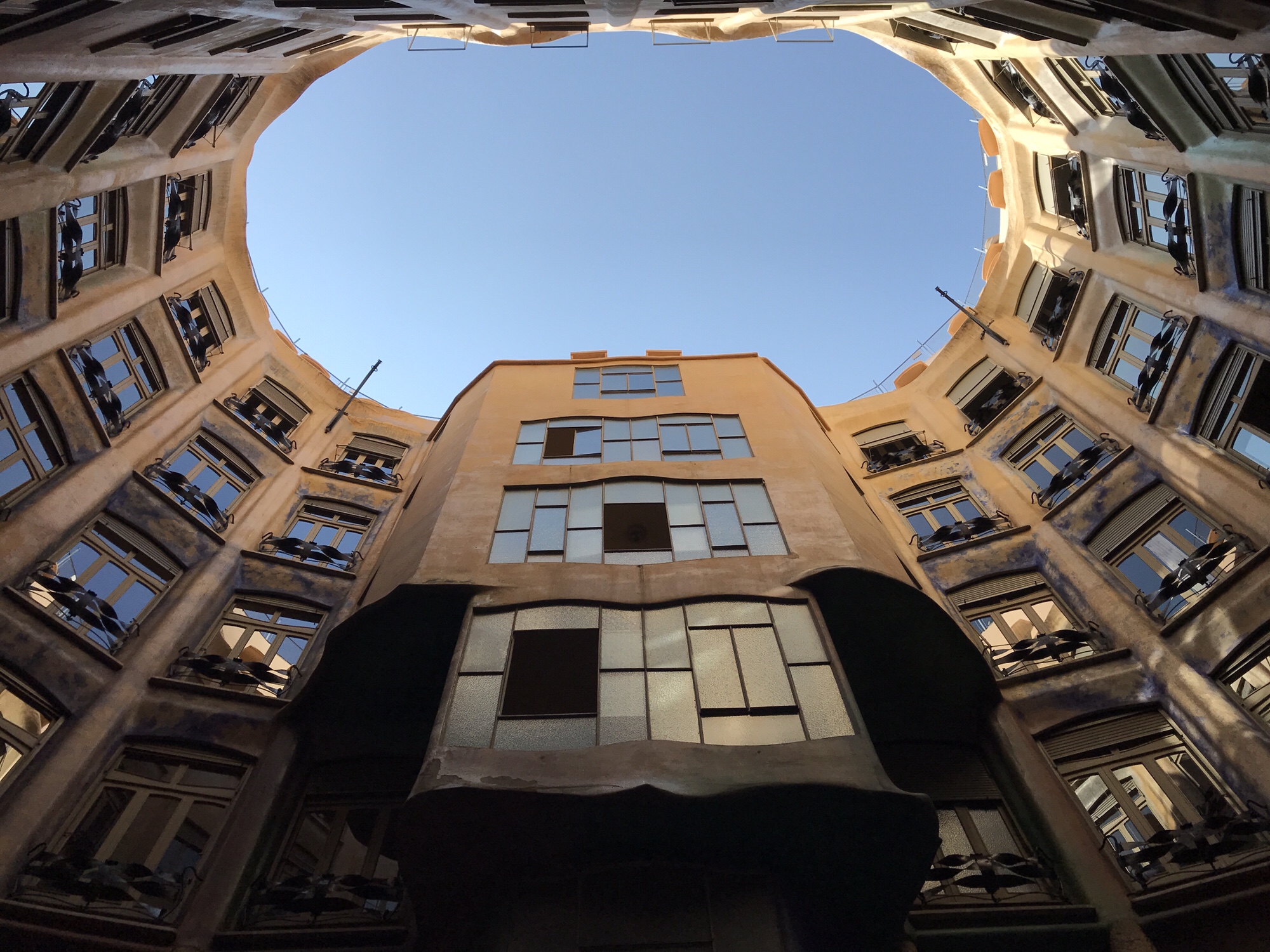 Wir starten wieder um neun Uhr Richtung Barcelona mit dem Bus und wenden uns vom Plaça de Catalunya Richtung Norden. Das Casa Mila (oder La Pedrera) sind nur einen kurzen Fußmarsch entfernt.