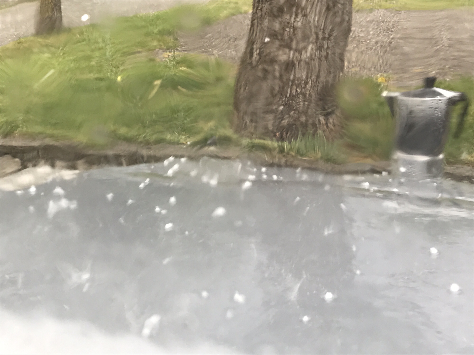 Ein Gewitter geht über uns runter und wir verkriechen uns ins Auto. Zum Glück dauert es nicht so lang.