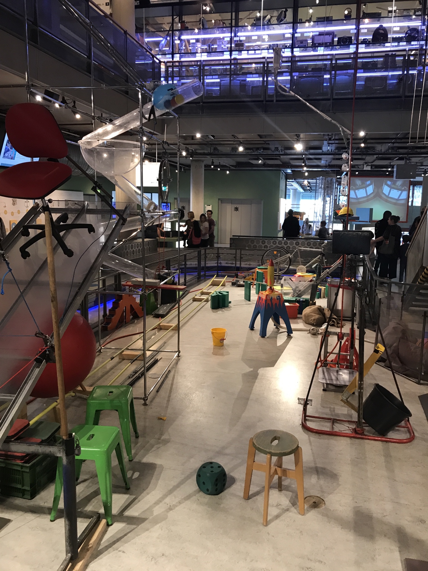 Zusätzlich dazu findet in regelmäßigen Abständen eine Vorführung zum Thema Kettenreaktion über 3 Stockwerke statt. MEGA.