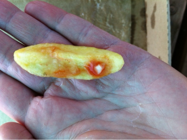 Zum Mittagessen geht’s zurück nach Port Ellen um im örtlichen Sea Salt Bar Fish & Chips zu ordern. Alles eingepackt und zum Strand gefahren. Und dann passiert es: