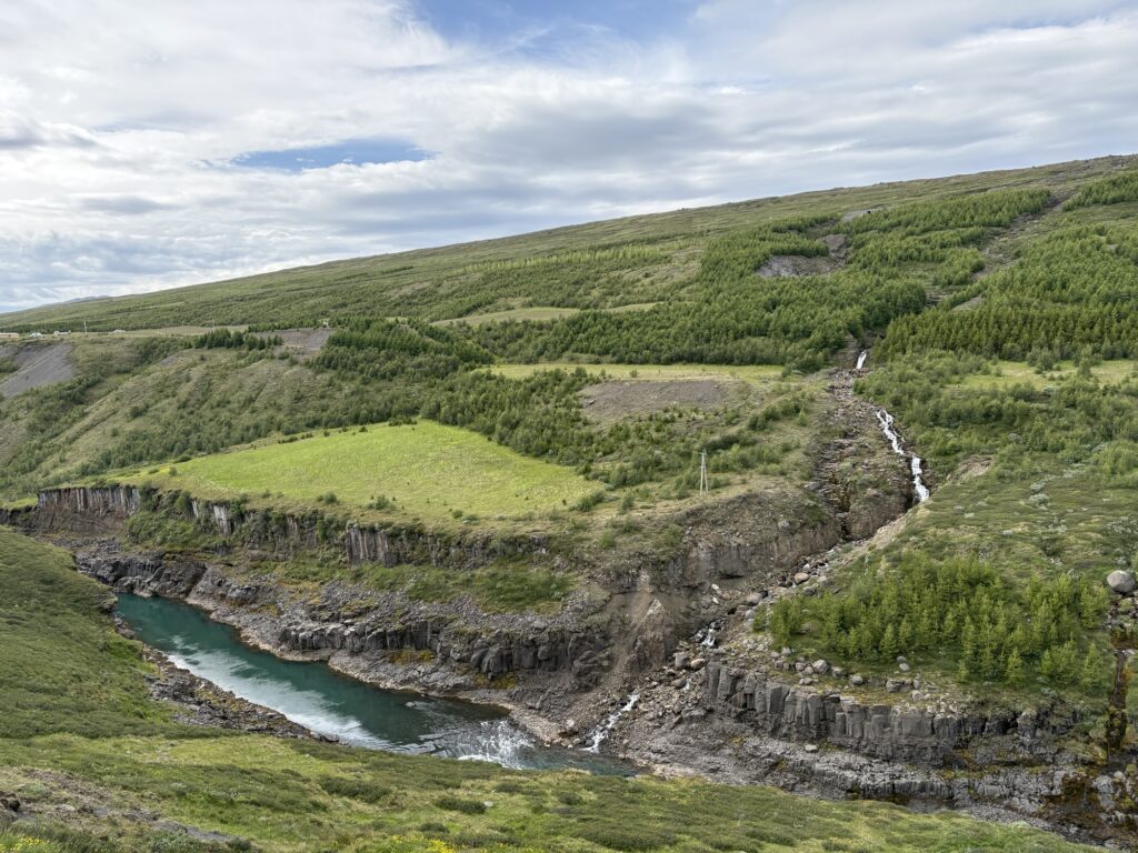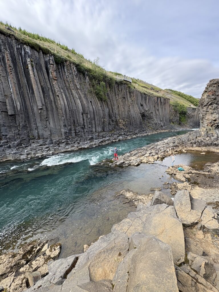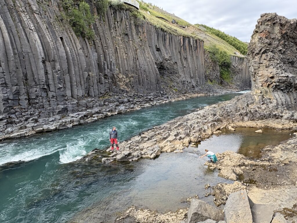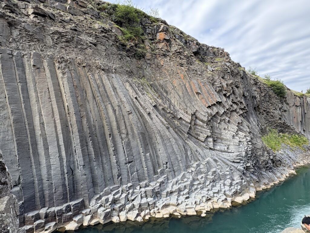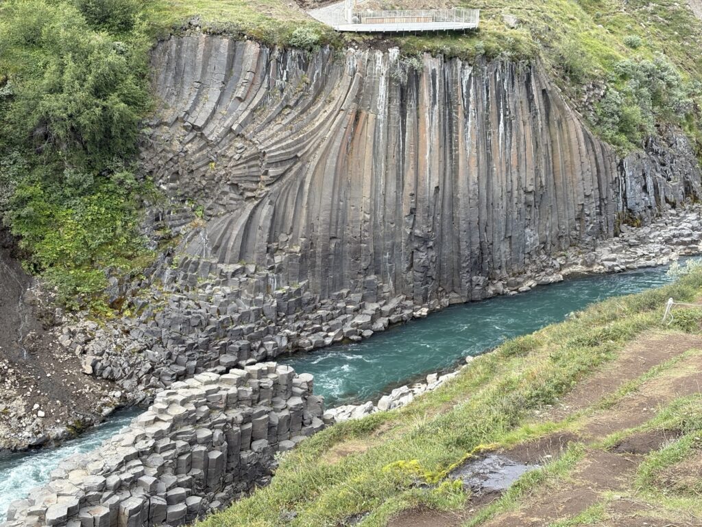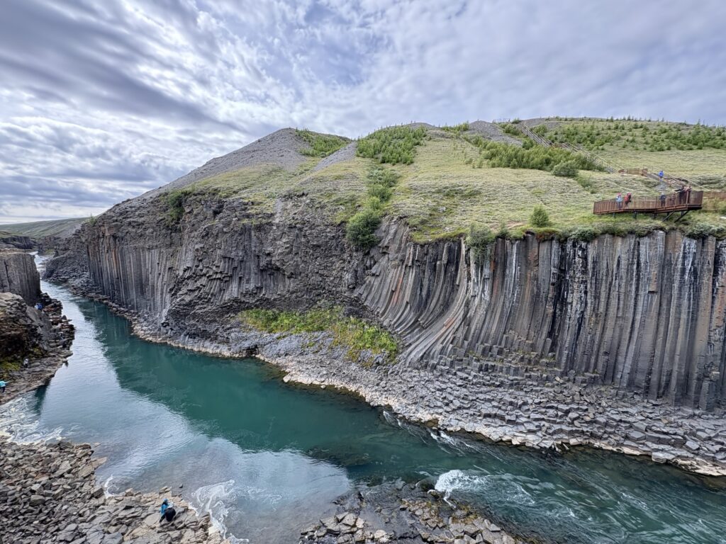 Stuðlagil ist für seine Basaltformationen bekannt, die erst entdeckt wurden als oberhalb der Schlucht eine Staustufe eingebaut wurde und so der Wasserpegel entsprechend abgesenkt wurde.