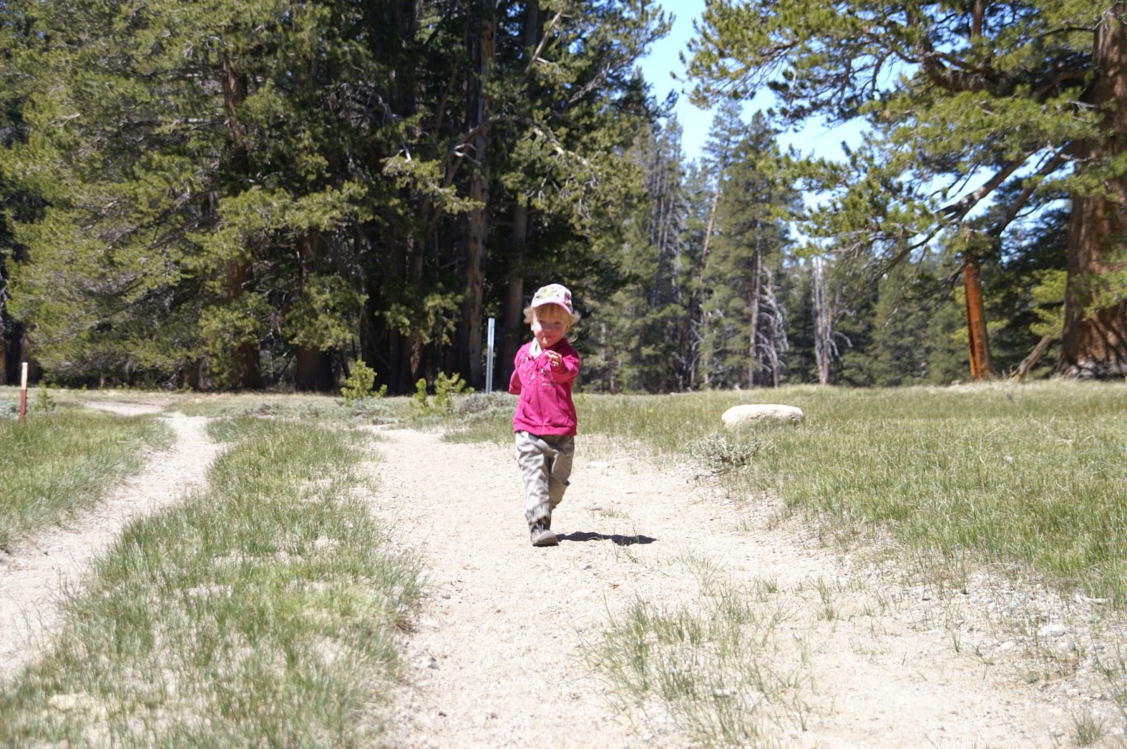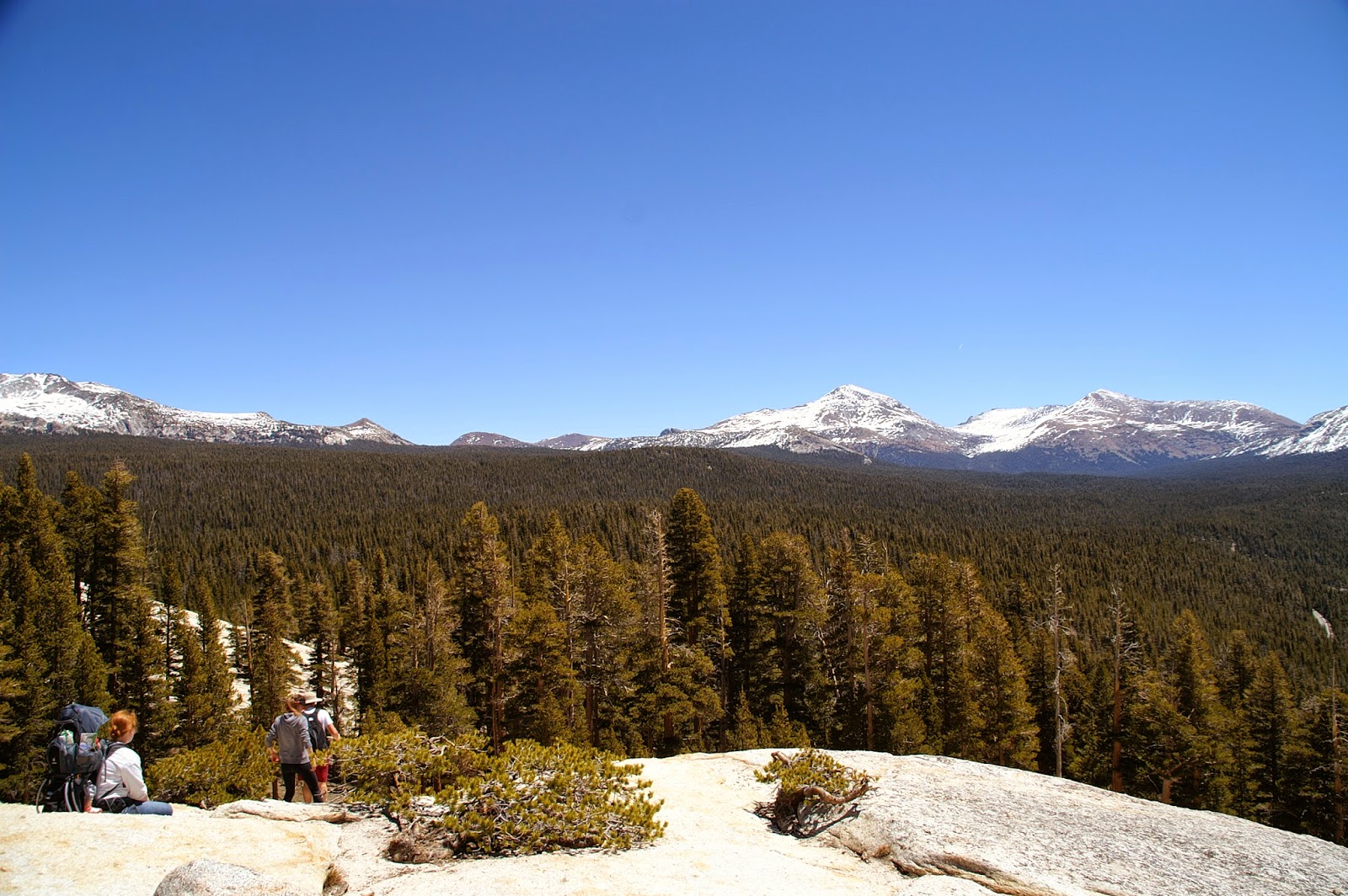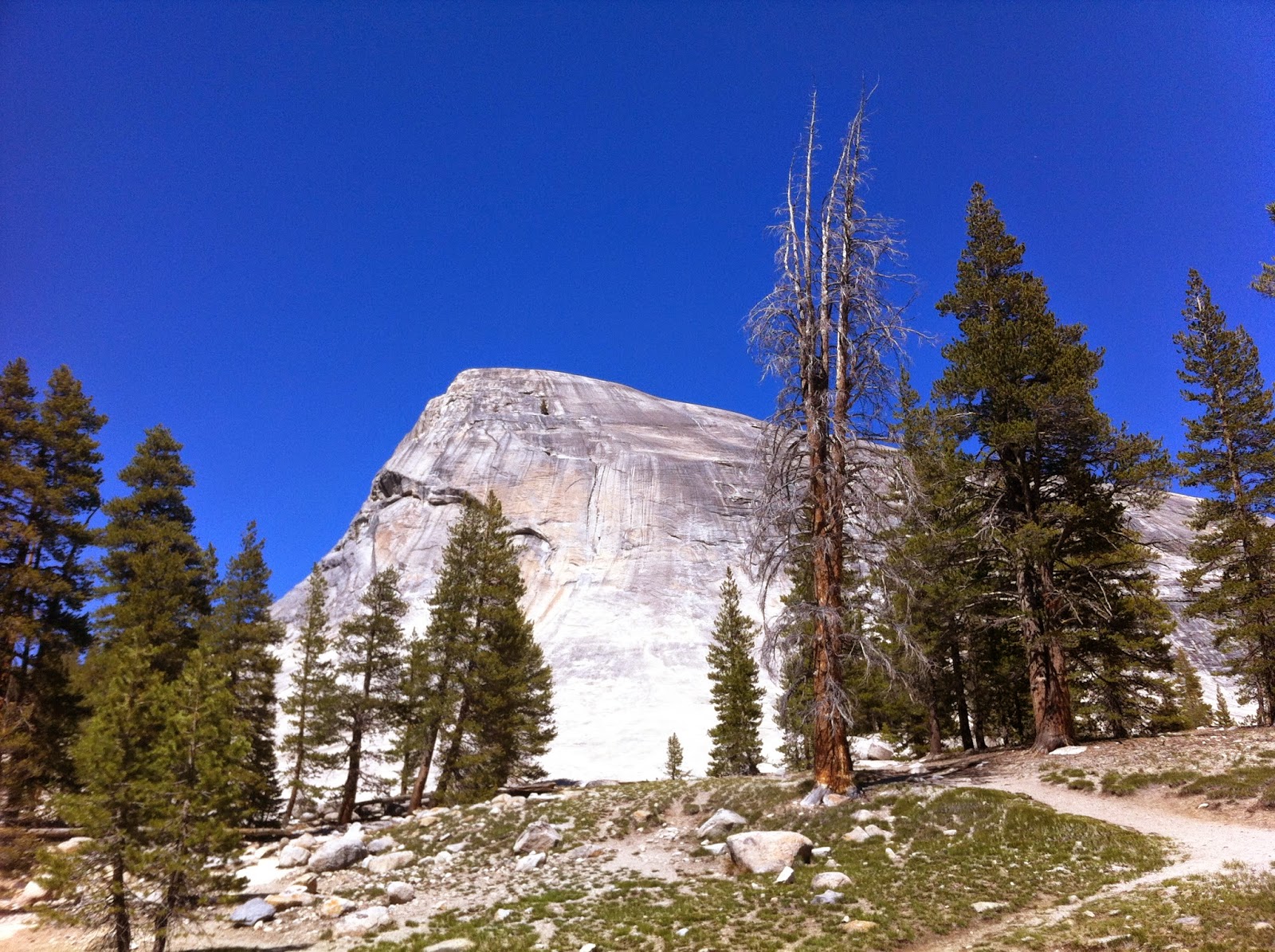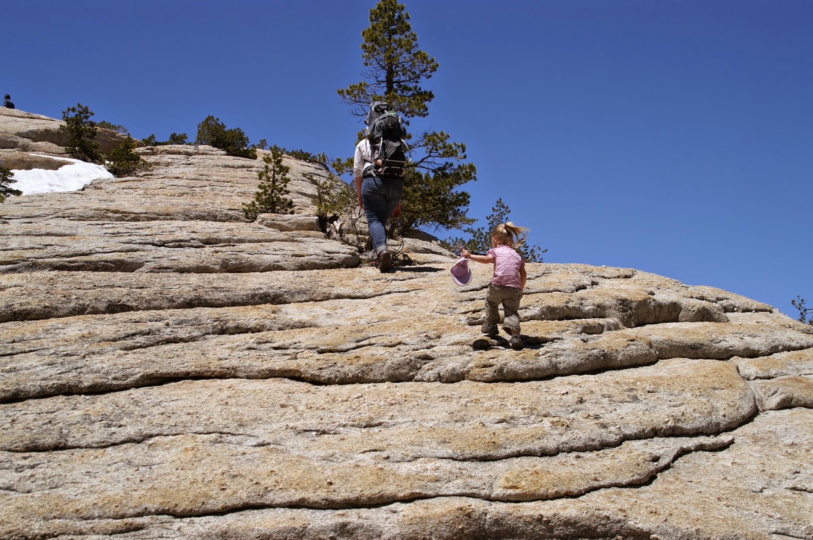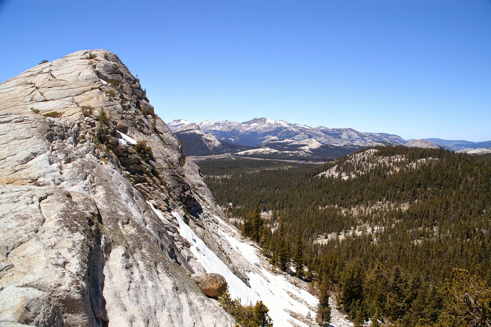 Da bietet sich in Tuolumne Meadows die Ersteigung des Lembert Dome an. Ein Granitfelsen an dem auch fleissig geklettert wird und ein schöner Trail hochführt.