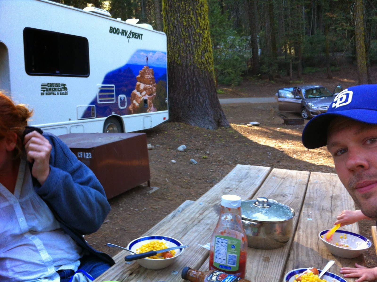 Nach einer kurzen Stärkung geht’s zurück zum Auto und weiter nach Crane Flat, zum wohl schiefsten Campground unserer Tour! und Abendessen.