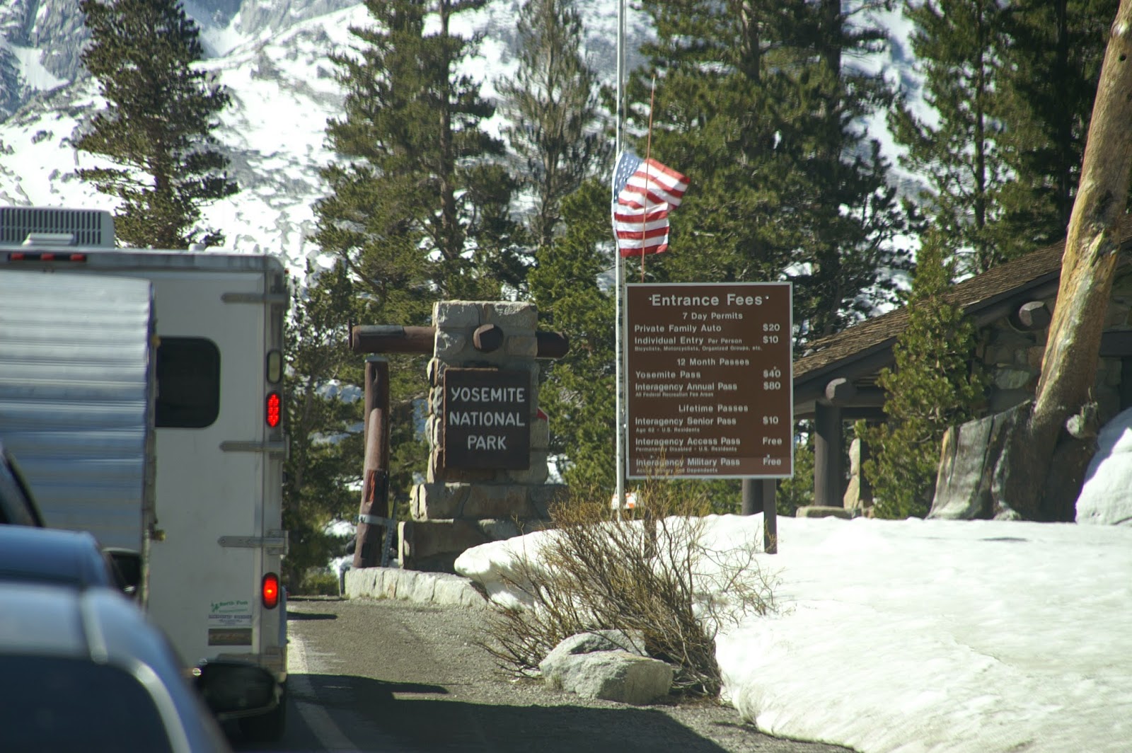 Stau an der Einfahrt in den Yosemite National Park. Aber nur ein kleiner zur Kontrolle der Einfahrtsberechtigung.
