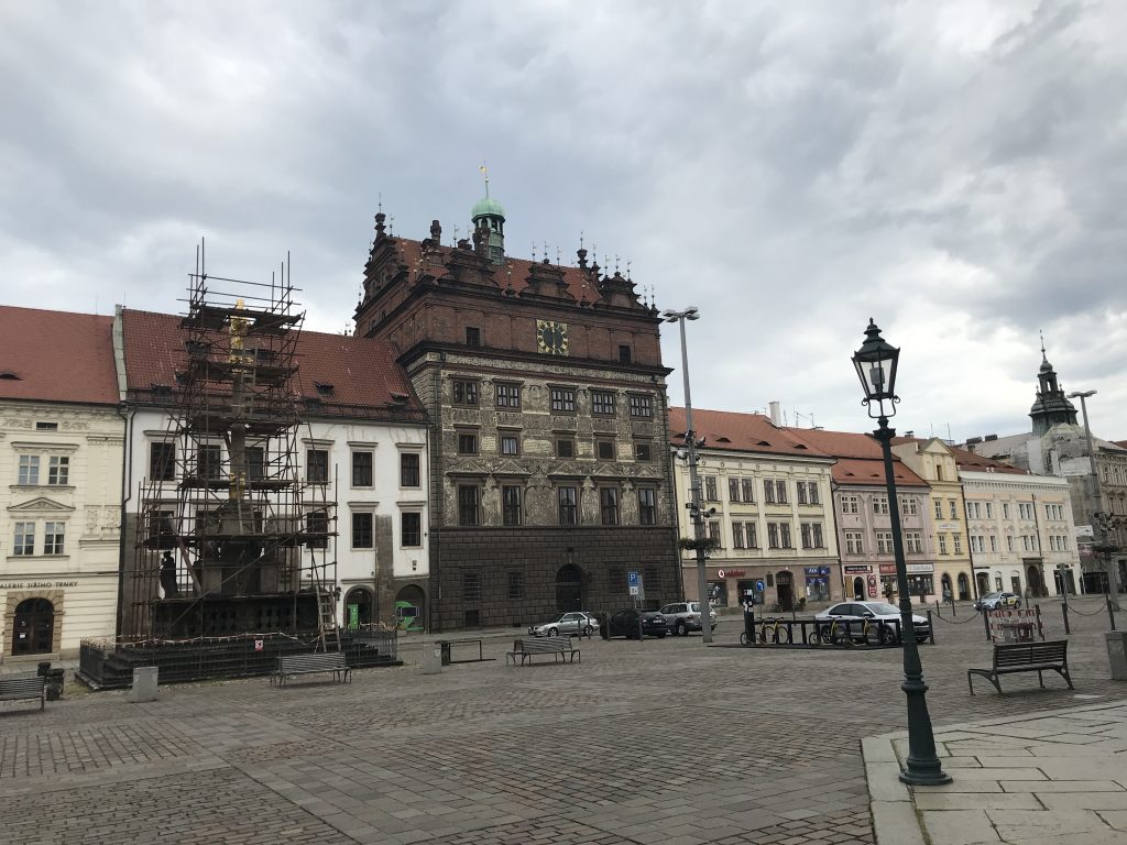 Da es noch früh am Tag ist, fahren wir mit dem Auto nach Pilsen rein um uns umzuschauen. In der Nähe des Stadtkerns finden wir einen billigen Parkplatz (39 Kč) und laufen zum Platz der Republik.