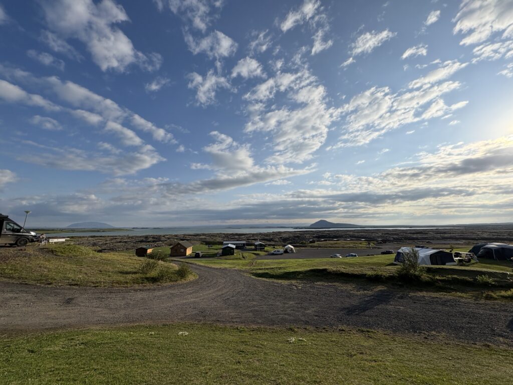 Wir suchen uns einen Campingplatz in Sichtweite des Myvatn aber soweit weg wie möglich. Denn übersetzt heißt Myvatn – Mückensee und Name ist Programm. Wir werden fündig in Hlíð.