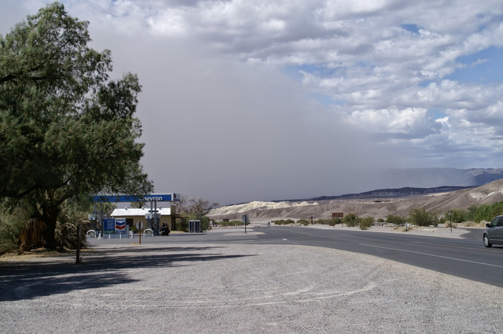 Und Nest ist echt wörtlich zu nehmen. Panamint Springs besteht aus einer Tankstelle, einem Restaurant und eben dem Parkplatz (kein Wasser, keine Toiletten, schiefe Bänke).