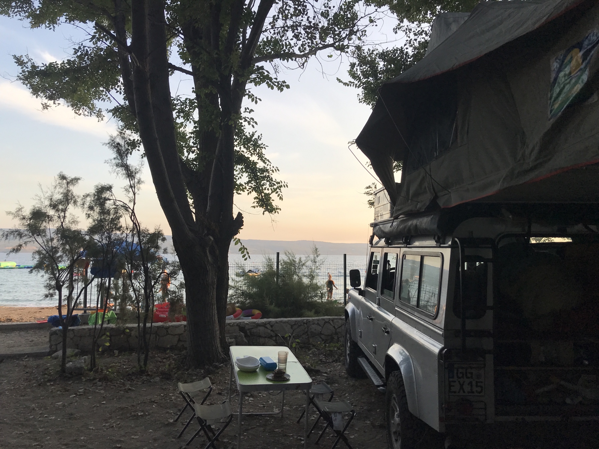 Da es schon so langsam Zeit wird einen Schlafplatz zu suchen, fahren wir an die Küste. Da stehen die Chancen besser. Und nach dem dritten Versuch bei einem Autocamp haben wir Glück. Erste Reihe am Meer.